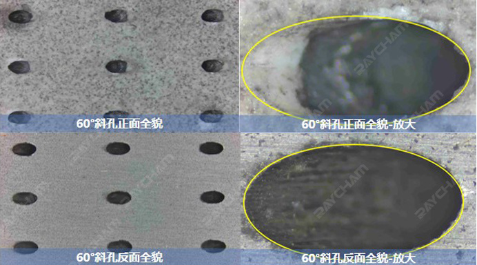 60°斜孔-無(wú)涂層鎳基高溫合金加工結(jié)果觀察